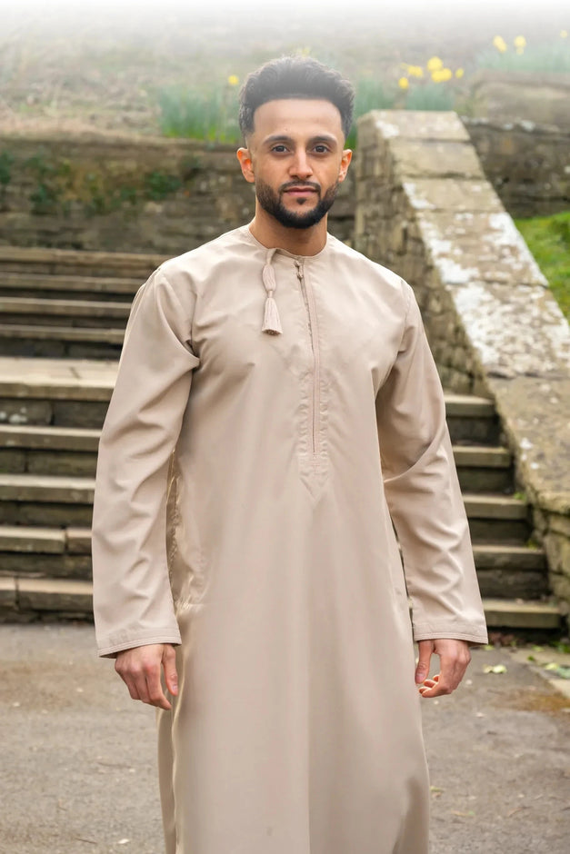 Crafted without compromise. A Work of Heart. We don’t meet standards; we define them. Our thobes are more than garments; they’re a reflection of legacy, individually handcrafted with precision and purpose, to be worn with intent, honour, and dignity. With refined embroidery and stitching that exudes elegance, each thobe carries the mark of our experienced tailors, artisans who’ve mastered their craft over generations, weaving culture and authenticity into every thread while embracing a clean, modern aesthetic. What sets Qalbi apart isn’t just innovation; it’s passion, precision, and heart. Each thobe is meticulously hand finished using premium fabrics, setting a new benchmark for quality and craftsmanship. Water repellent, dust resistant, and odour proof, made for the man who demands more: more presence, more purpose, more meaning. Whether it’s Jumu’ah, Nikkah, Eid, or everyday elegance, Qalbi is for the man who wears tradition with distinction.